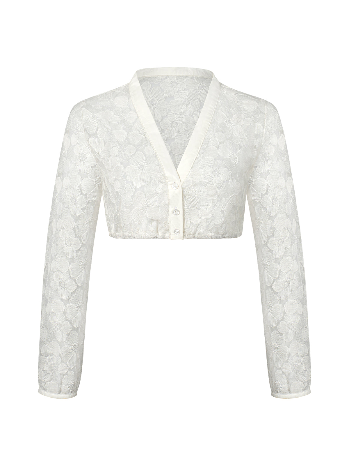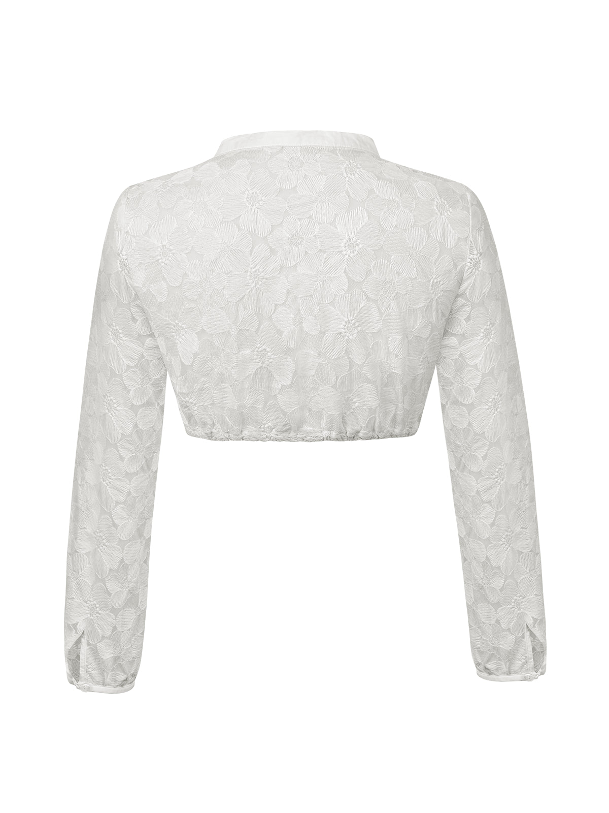 Dirndlbluse Damen Weiß Langarm V-Ausschnitt